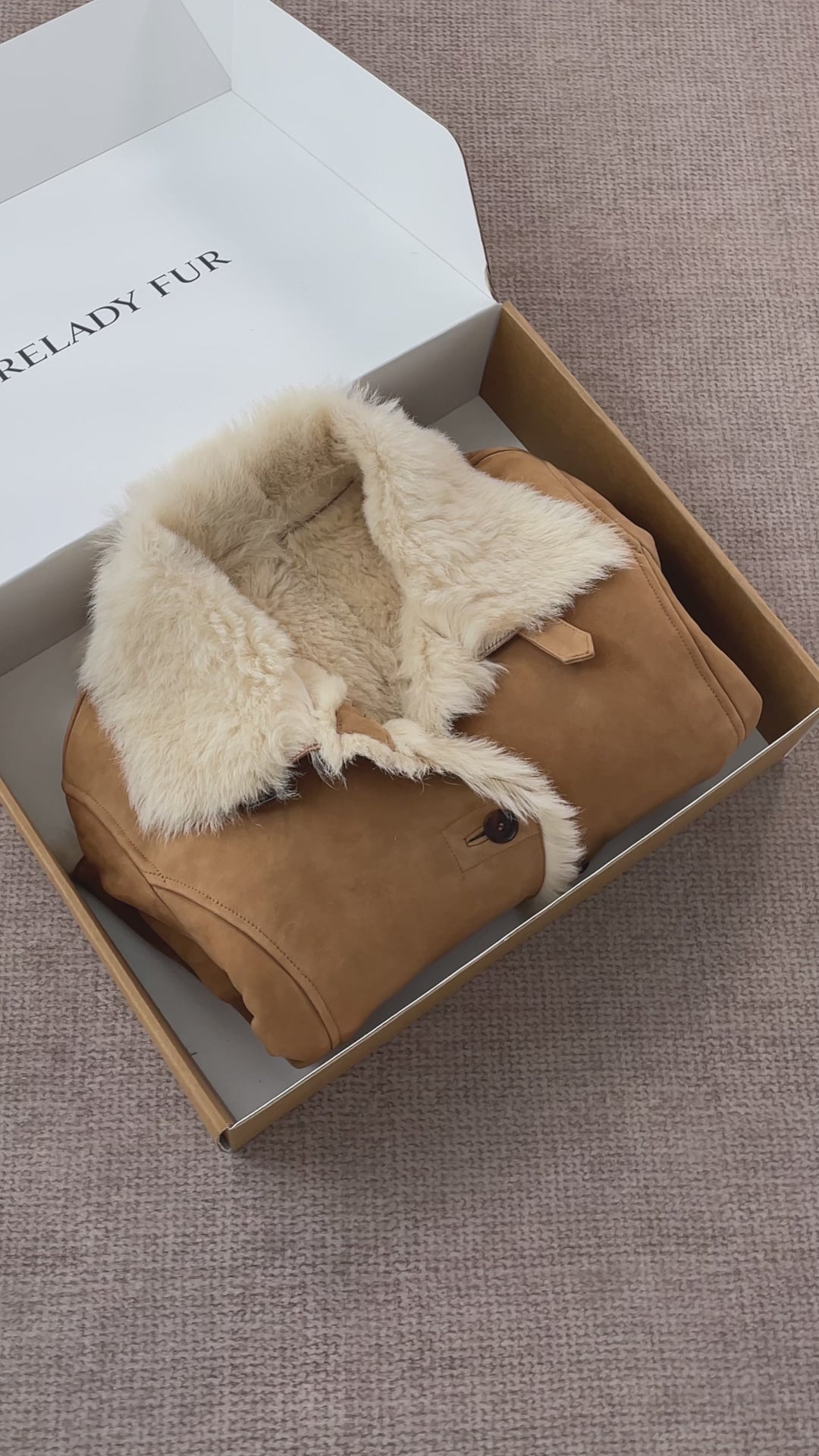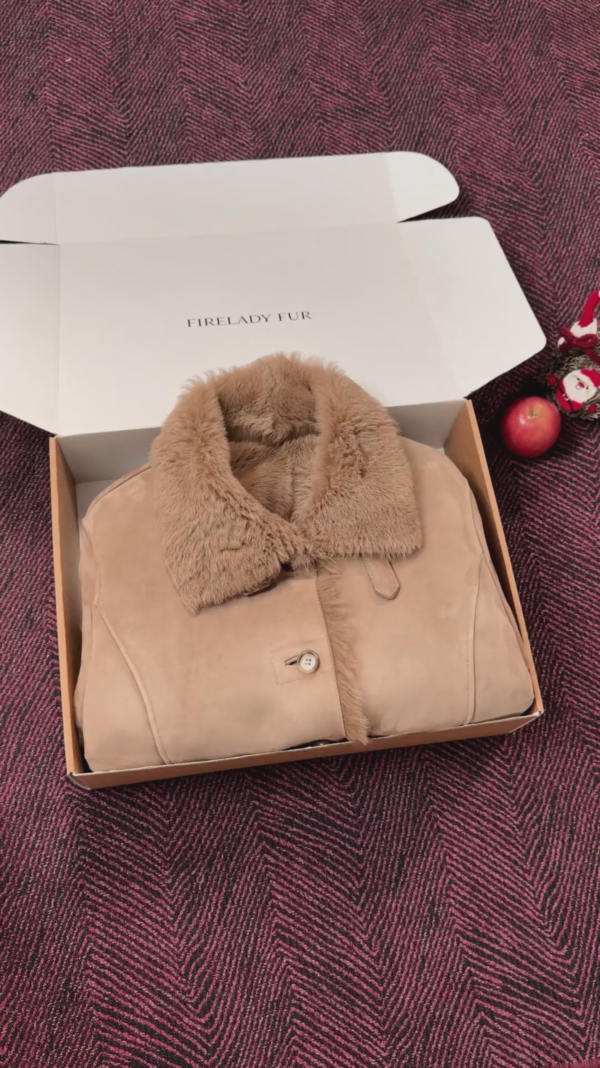 Firelady Fur Women’s Shearling Coat Crafted with Italian Contrast Suede & Tuscan Shearling“Winter Mochi”