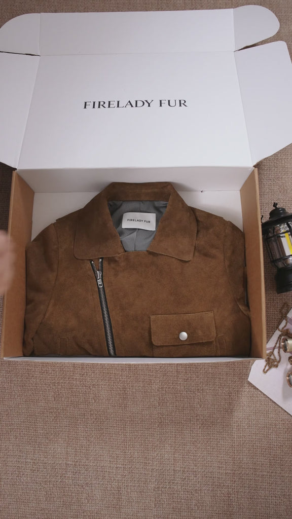 Firelady Fur Women's Motorcycle Leather Jacket - Notched Collar Short Biker Jacket - Movie Era