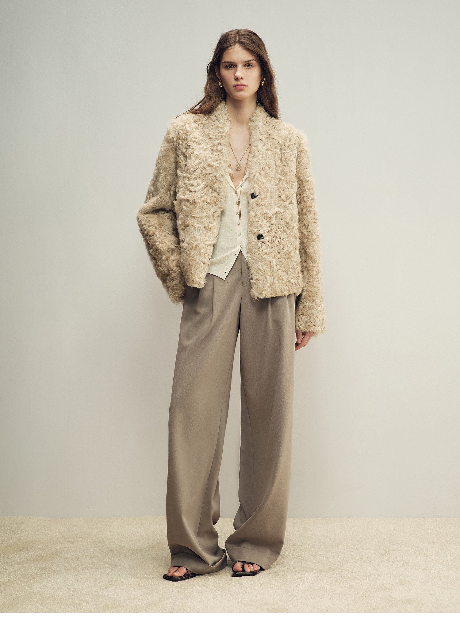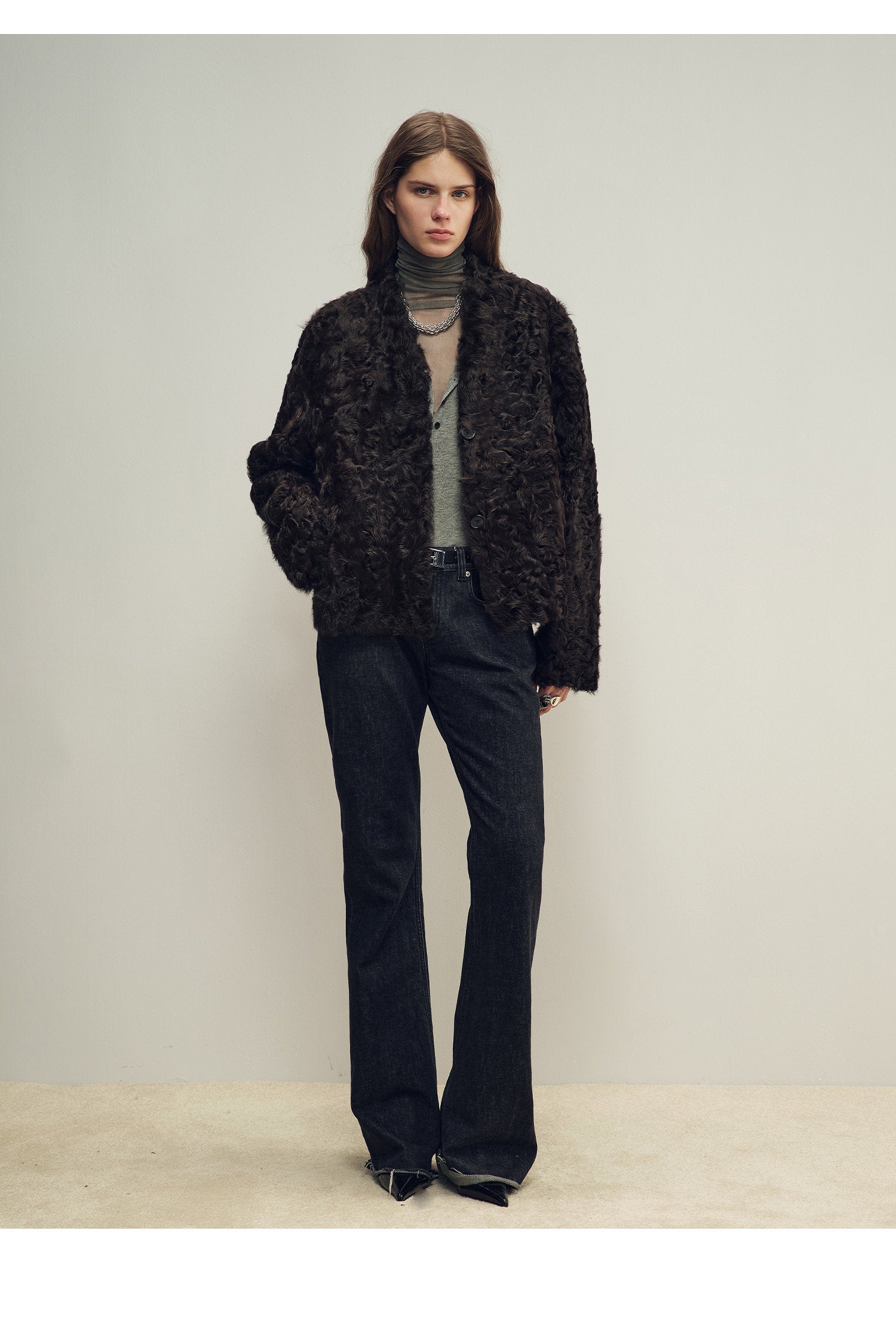 Crafted from one of the world‘s four premier lambskins — Lake Lamb — this coat features a natural, rippled fleece. With a straight-cut silhouette, standing collar, and tailored shoulders, the hide is lightweight, soft, and supple for easy wear, yet durable for lasting style.