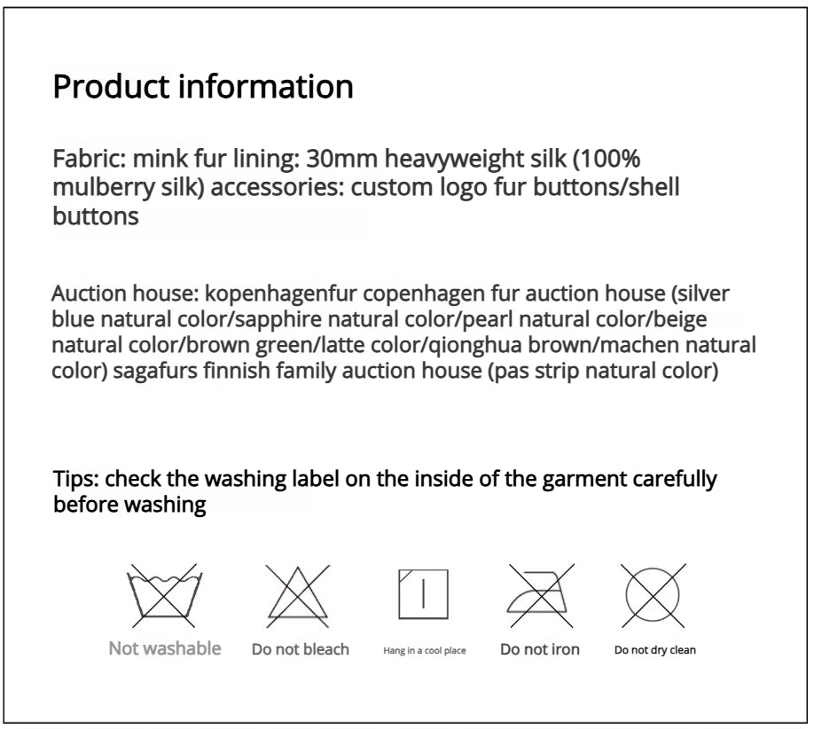 Our furs come from trusted, certified partners — Saga Furs, Kopenhagen Fur, and Toprak. Each source follows strict WelFur animal welfare standards, ensuring transparency, traceability, and ethical treatment throughout the entire process.