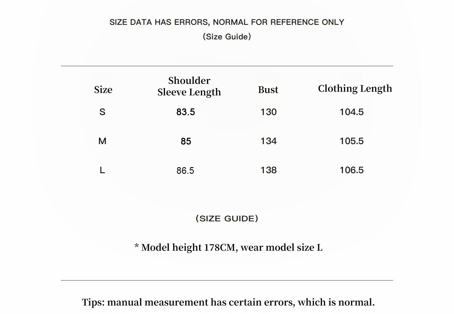 The SIZE GUIDE to the right of the SIZE provides complete sizing information, helping you quickly determine the correct fit for this garment.